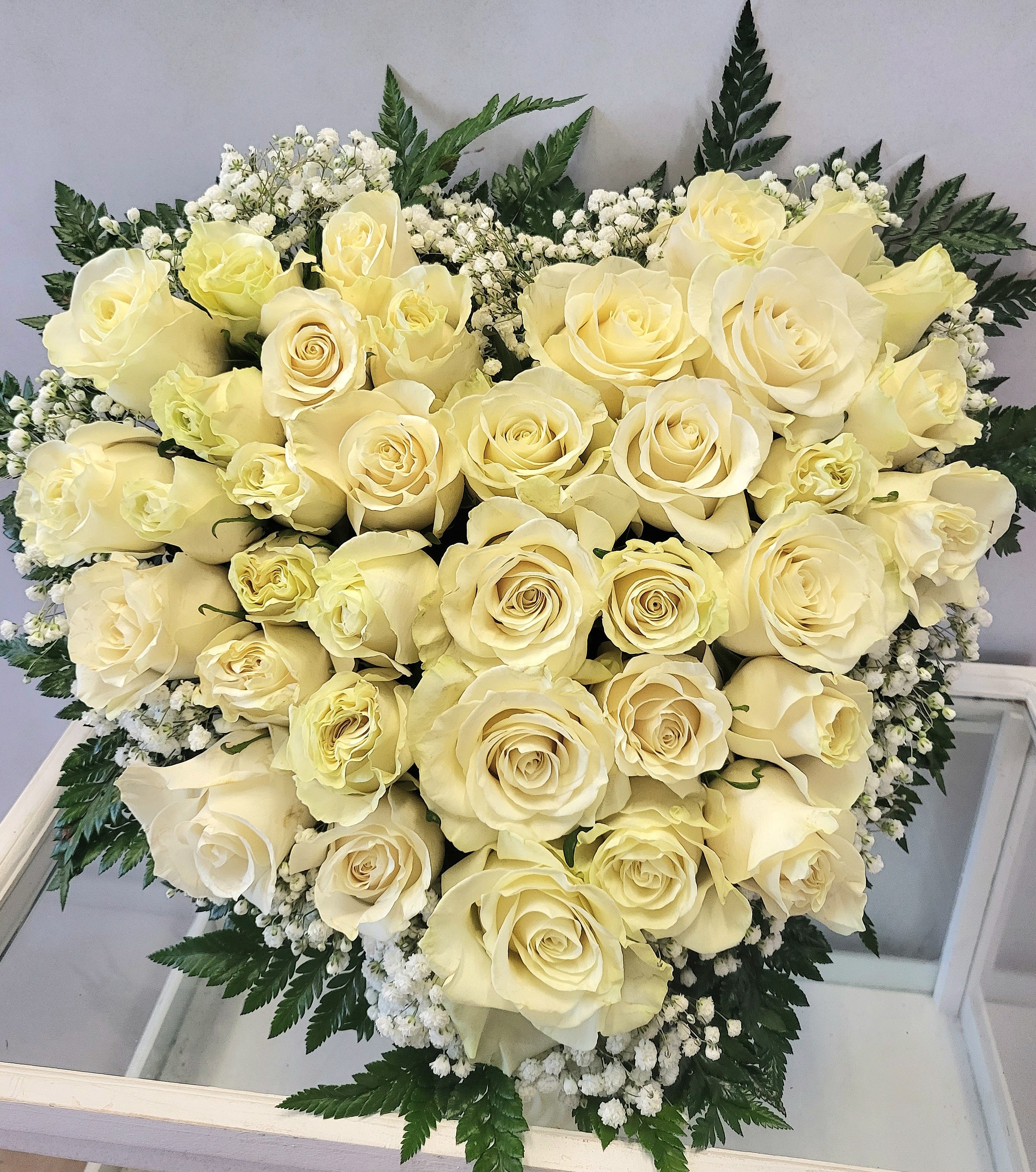 Corazón con tres docenas de rosas Tamaño grande (50 cm)