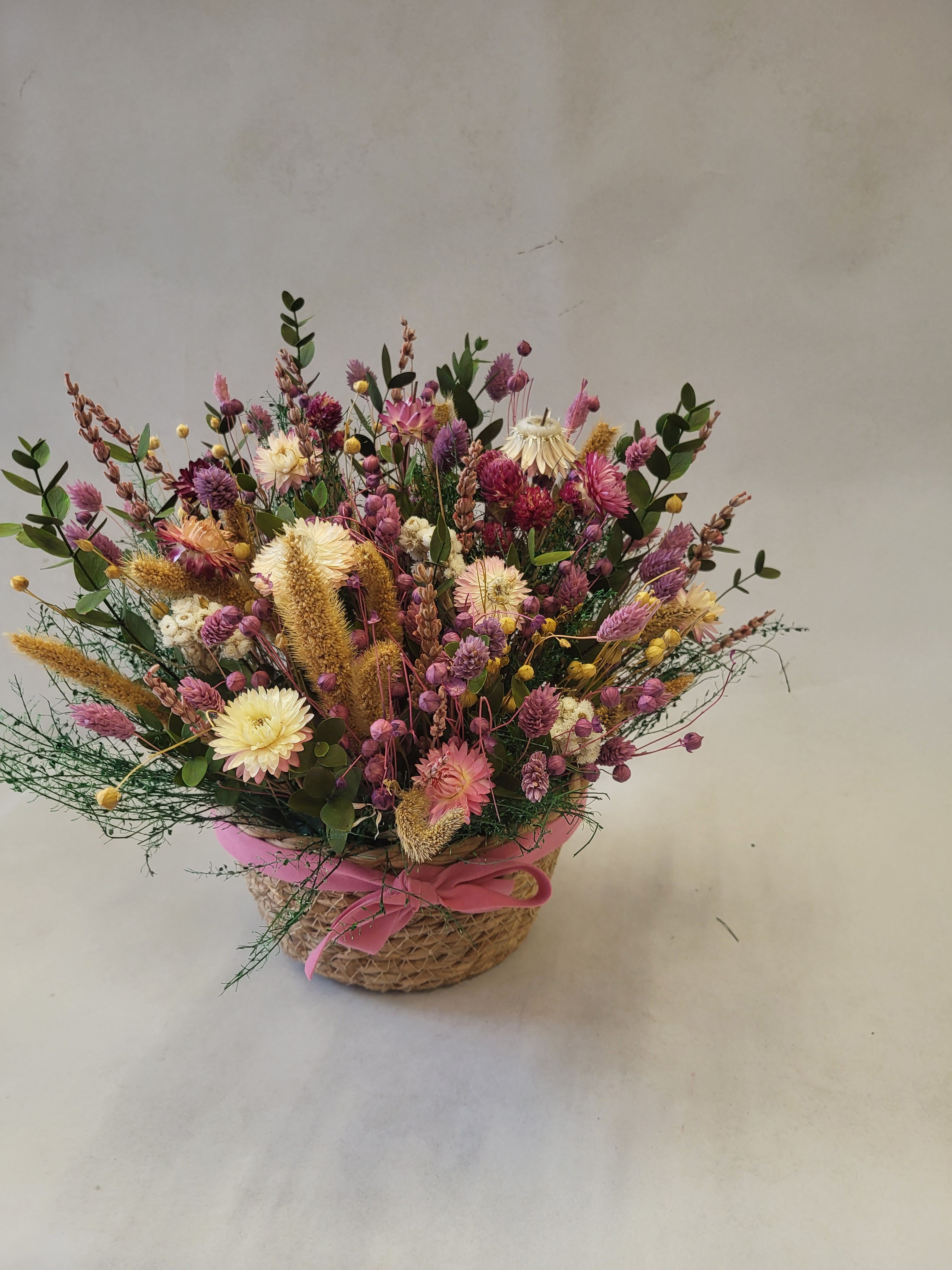 Puedes alargar la vida de tu centro de flores naturales añadiendo agua a la esponja que sostiene las flores para se mantenga con humedad en todo momento y retirando las flores o verdes que vayan madurando ..también puedes reciclar el envase