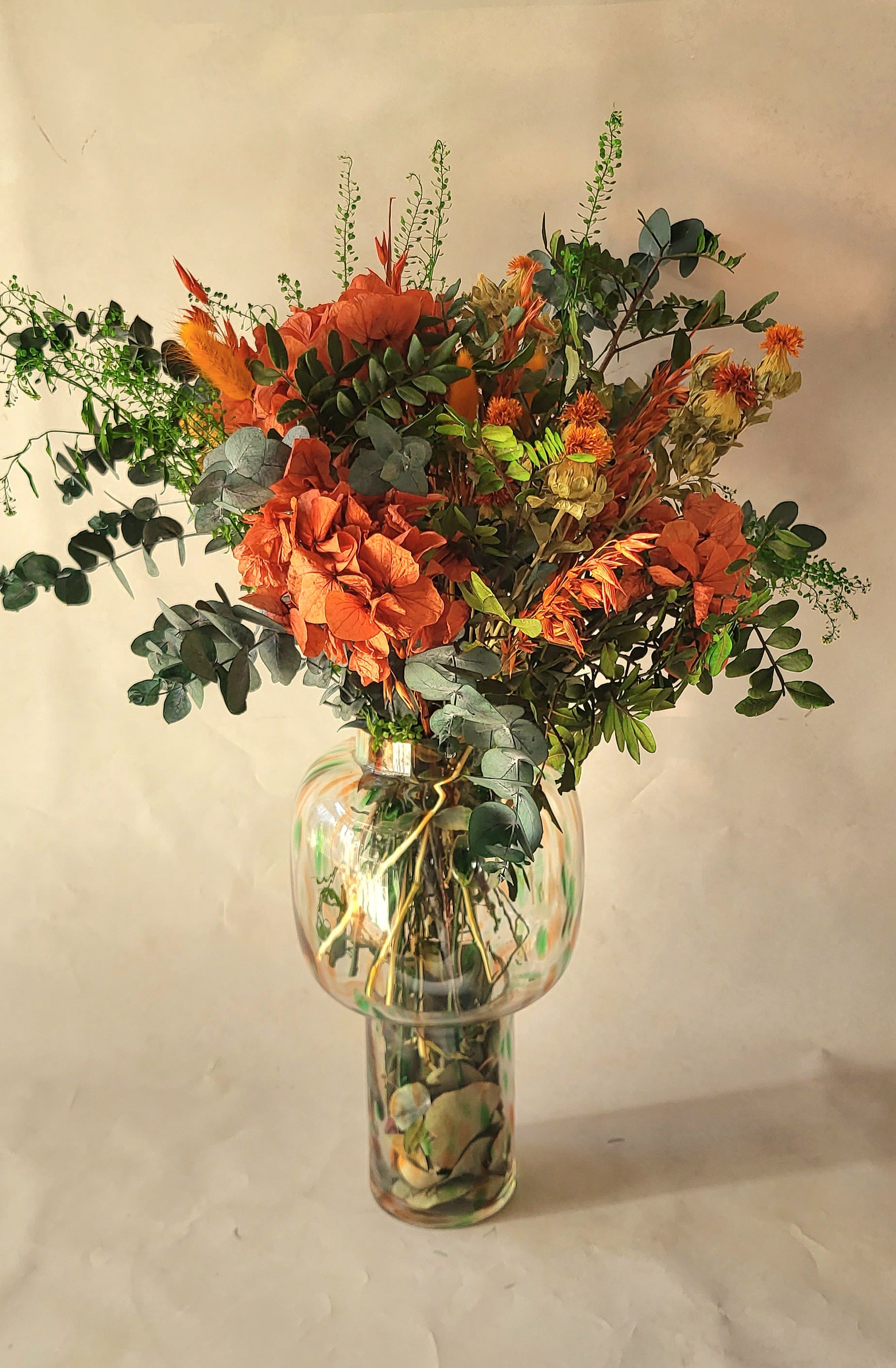 Ramo de flores secas y preservadas en jarrón de diseño