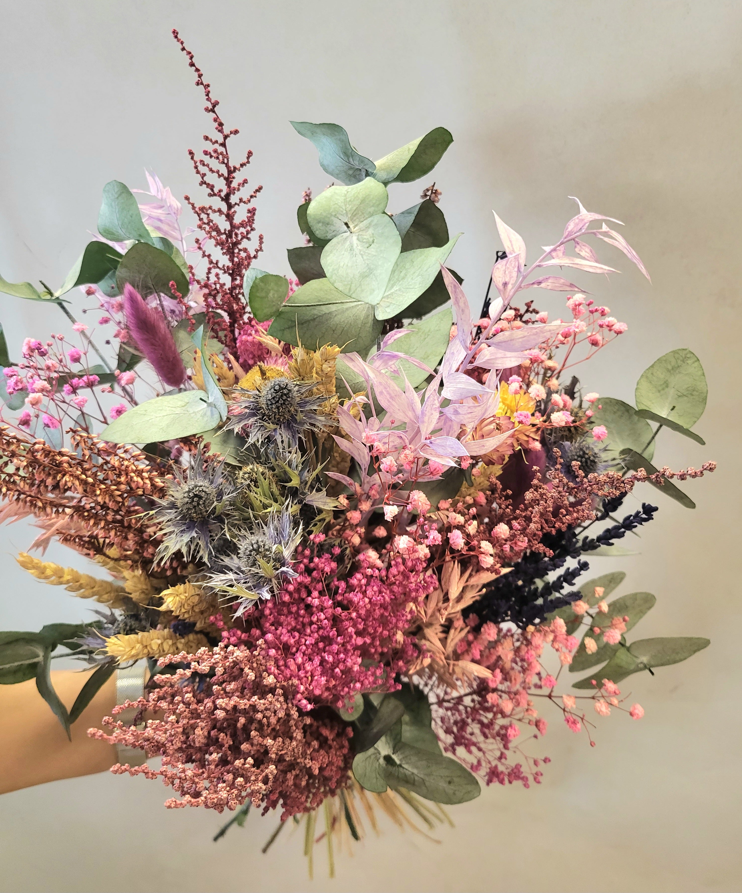Puedes alargar la vida de tus flores secas y preservadas evitando el sol directo sobre las flores y cualquier ambiente húmedo.