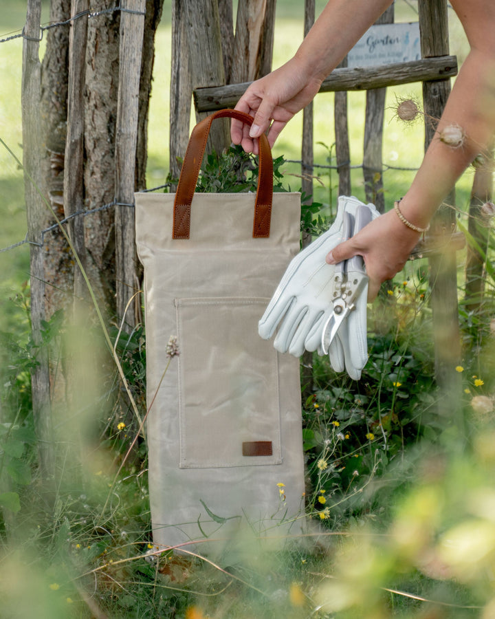 Gracias al canvas encerado de alta calidad y al mango de cuero, no solo es duradero, sino también un accesorio de jardín elegante. Ideal para jardinería, manualidades y actividades al aire libre.