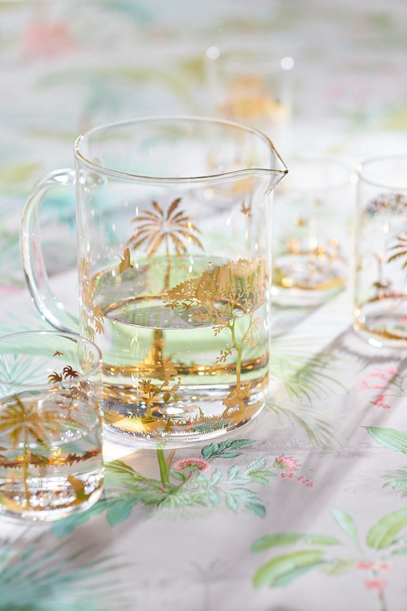 Esta jarra de agua forma parte de nuestra colección La Majorelle, con flores exóticas decoradas en un lujoso y brillante oro. Combina a la perfección con otros artículos de la colección La Majorelle.