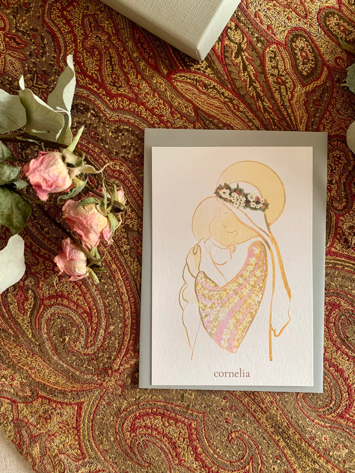 • 10 postales modelo Virgen con Niño Jesús con 10 sobres color nieve.