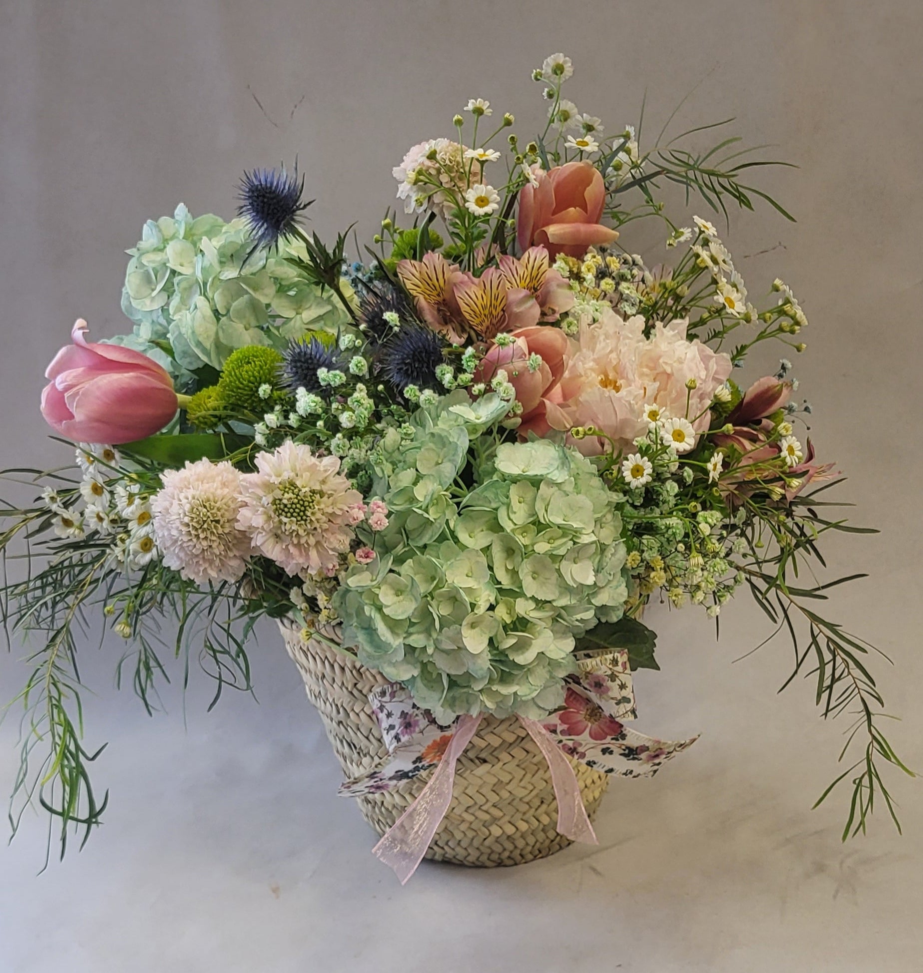 Capazo con flor variada Tamaño grande (30x40 aprox)